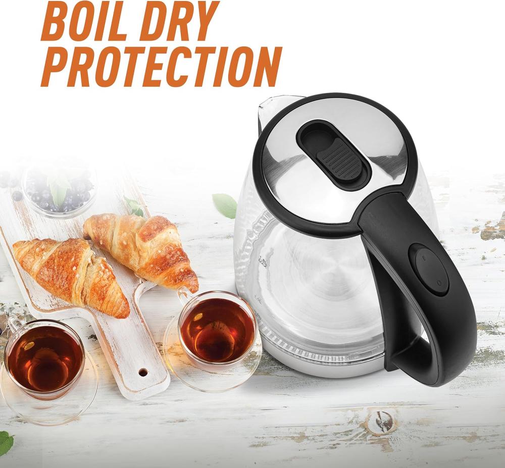 - غلاية كهربائية بدون سلك بسعة 1.8 لتر بجسم زجاجي