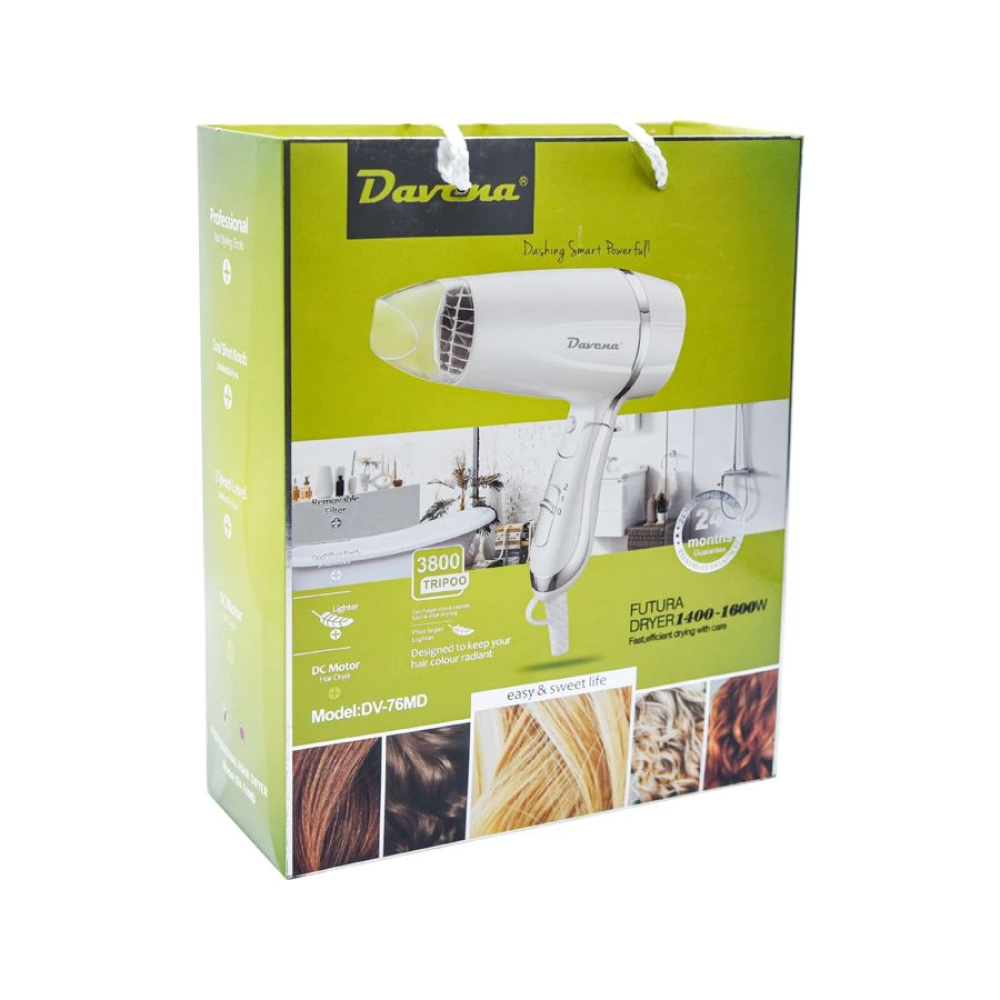 المواصفات: - تمتعي بمظهر شعر جميل وانسيابي مع مجفف الشعر الاحترافي من دافينا. - جهاز سريع في تجفيف الشعر. - يترك الشعر بمظهر حيوي وصحي. - اختيار مناسب لنتائج إحترافية يمكنك عملها في المنزل.