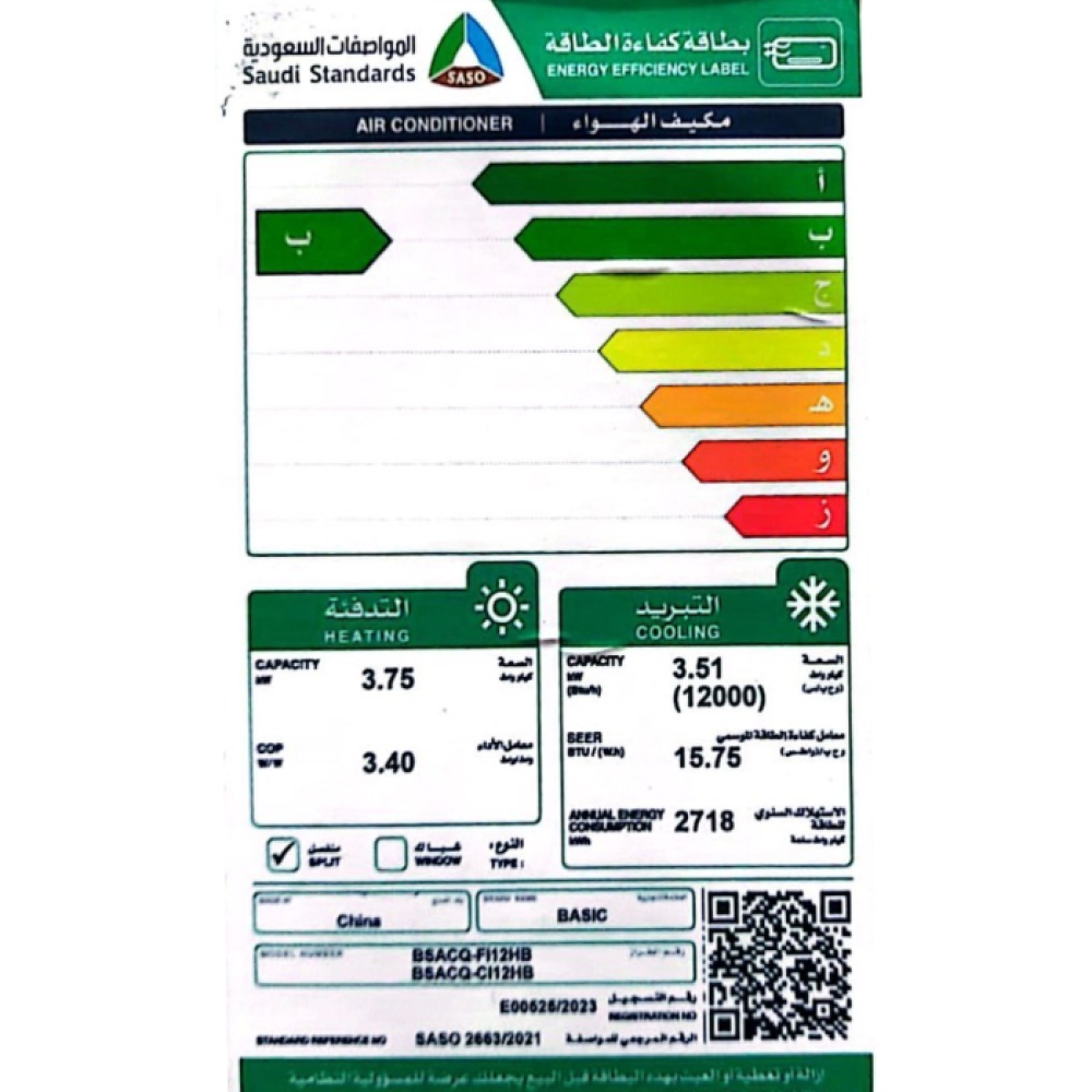 مكيف سبيلت بيسك انفرتر 12 بارد BASCQ-FL12CB